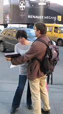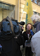 Пикетчики тут же разделились на две неравные части – одни сникли, другие, напротив, воинственно подняли головы и заявили, что готовы стоять до последнего активиста. Оживилась и бригада немецких тележурналистов (WDR), которых было больше, чем пикетчиков – журналисты выстроились широким полукольцом и начали съемку, предвкушая экшен.