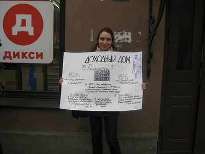 18 апреля, в Международный день охраны памятников и достопримечательных мест (или, иначе, в день Всемирного наследия) участники движений «Синяя лента» и «Живой город» вновь провели акцию «Живая улица». На этот раз на пешеходной части Большой Московской улицы (от Владимирской площади до Разъезжей).
