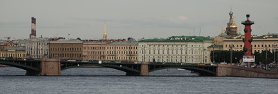 Сразу скажу: это все от недостатка наблюдательности, от недостатка времени, посвящаемого прогулкам по городу, созерцанию его в разные времена суток, периоды года, при разных состояниях погоды и природы. Петербург бывает разным, воздух в нем бывает разным, бывает в нем и дымка, и она бывает разной. Бывает, когда после резкого сильного ветра с моря воздух делается столь пронзительно прозрачным, что самые-самые далекие или мелкие объекты становятся видны в мельчайших деталях. Тогда особенно хорошо фотографировать открыточные виды – все планы, и близкие, и дальние, идеально ясны, четки и резки. Да и в другие моменты дымка вовсе не правит бал. Условия видимости часто более зависят от условий освещения – утреннего, дневного или вечернего. Или от того, что прямо над Вами туча, а в перспективе за двумя мостами – дома пылают в лучах закатного солнца. Или наоборот – солнце освещает все перед Вами, а задние планы погружены в густые тени. Один и тот же вид всегда разный – то Вы смотрите на него против солнца, то солнце у Вас за спиной, или с боку, или наискосок. Все это порождает самые разные эффекты, вплоть до того, что близкие и дальние планы будто меняются местами – дома на первом плане пропадают в дымке или тонут в сумраке, а задний план возвышается над ним, как Божье Царство над мрачным облаком. И какой-нибудь высокий объем то сияет на солнце, то торчит темной угрюмой громадой вопреки стараниям даже такого старательного декоратора, как петербургский туман, или вовсе не видим или незаметен среди всеобщей пестроты, разбрызганной, например, вечерним солнцем.